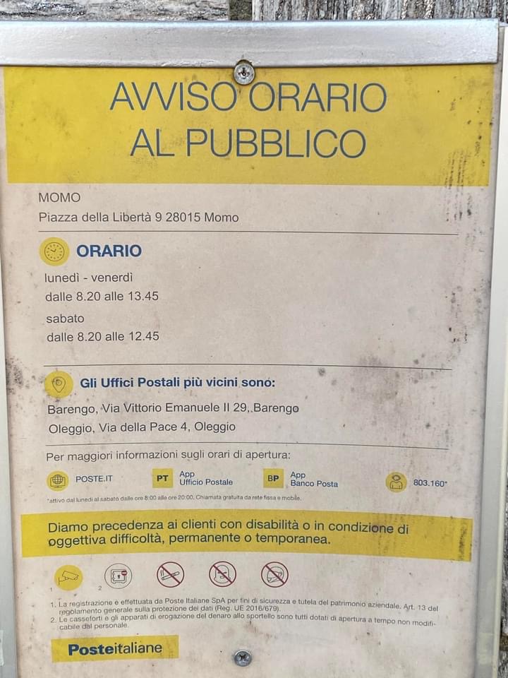 Si prega di prendere visione dei giorni ed orari di ritiro delle pensioni.