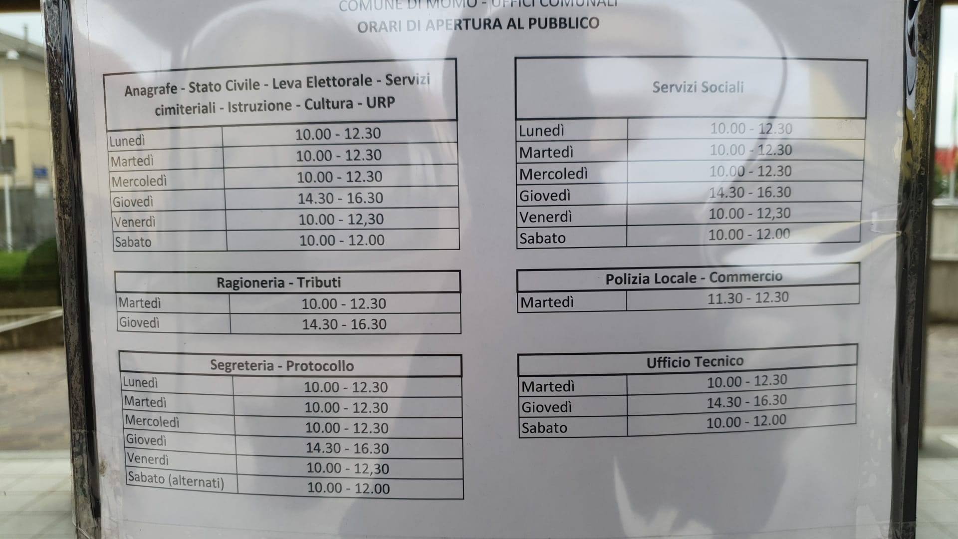 Da domani lunedì 20 settembre gli uffici comunali riapriranno al pubblico secondo gli orari di cui al documento allegato.